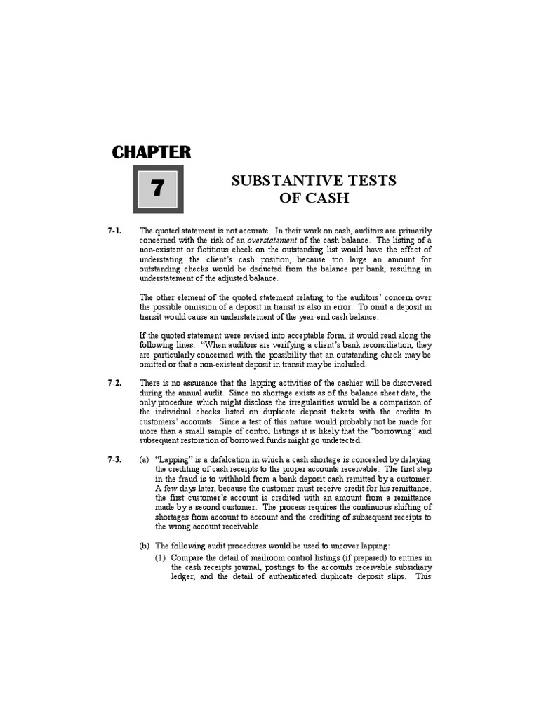 7-1. The quoted statement is not accurate. In their work on cash, auditors are primarily