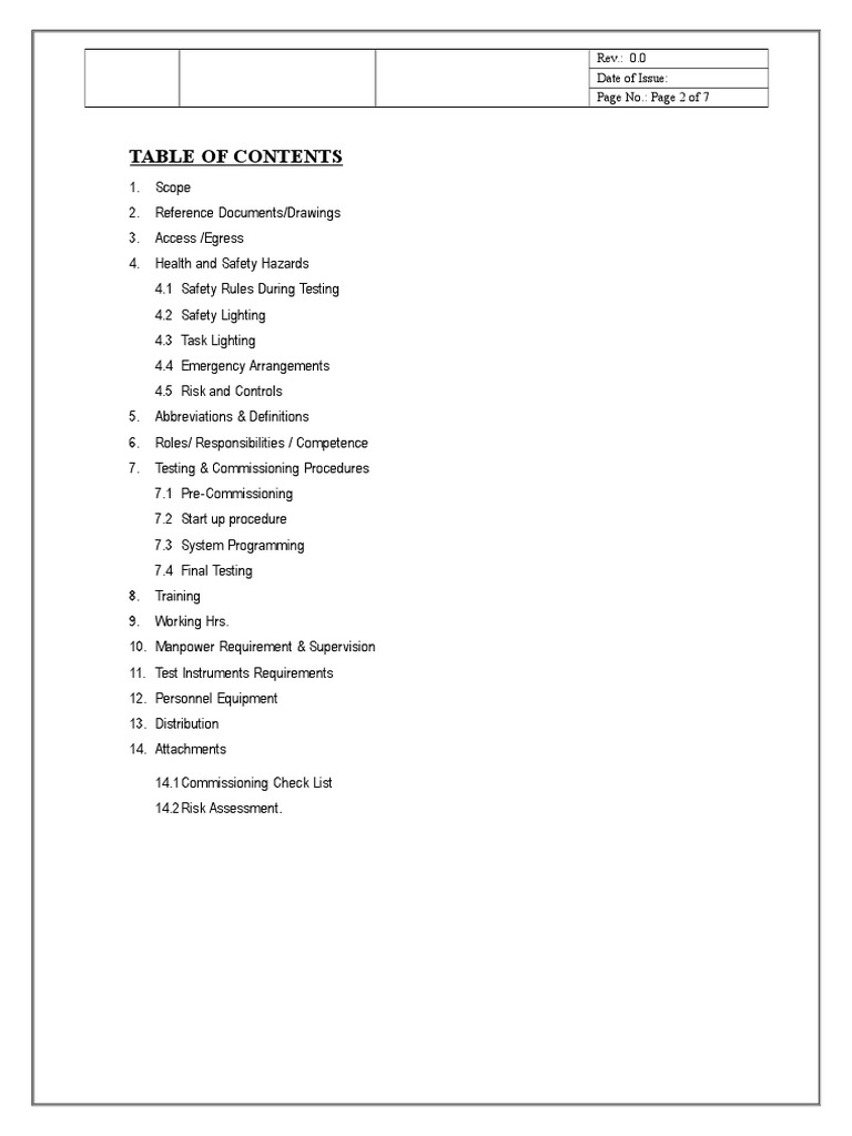 Commissioning Engineers who will conduct the Commissioning shall have the experience in