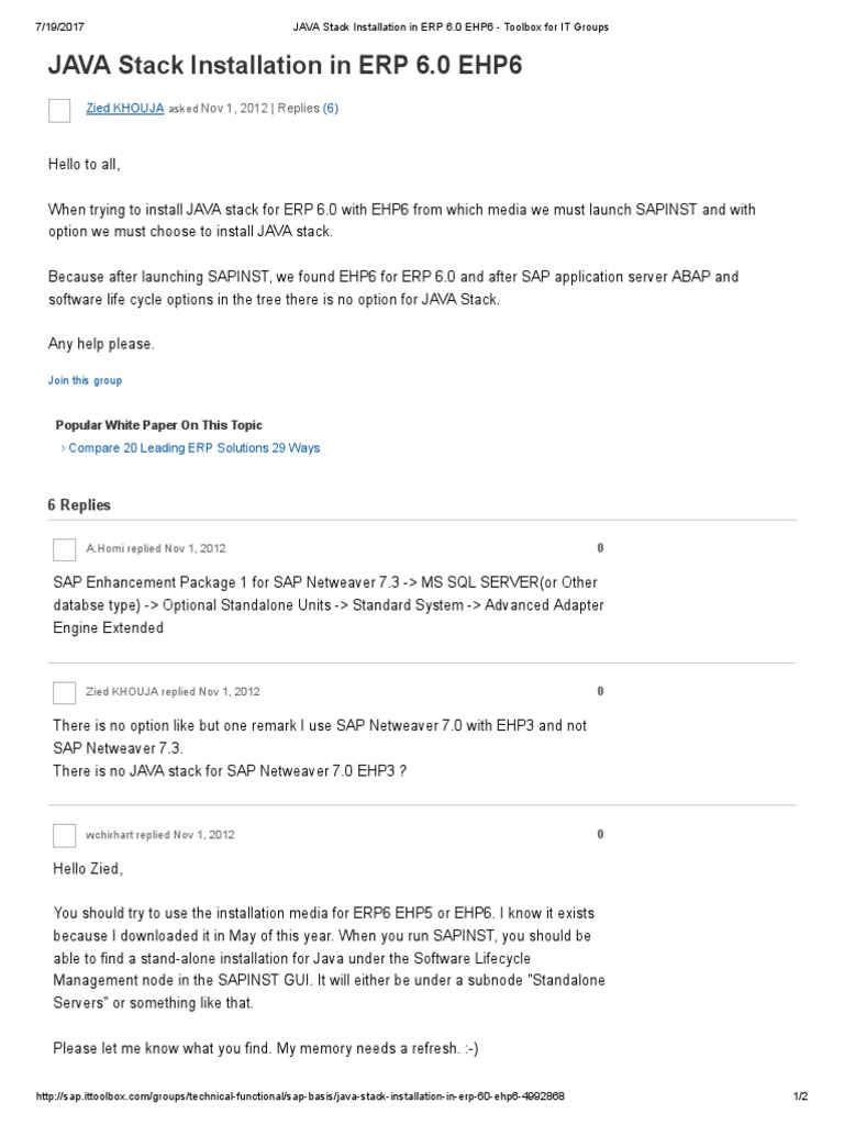 http://sap.ittoolbox.com/groups/technical-functional/sap-basis/java-stack-installation-in-erp-60-ehp6-4992868 1/2
