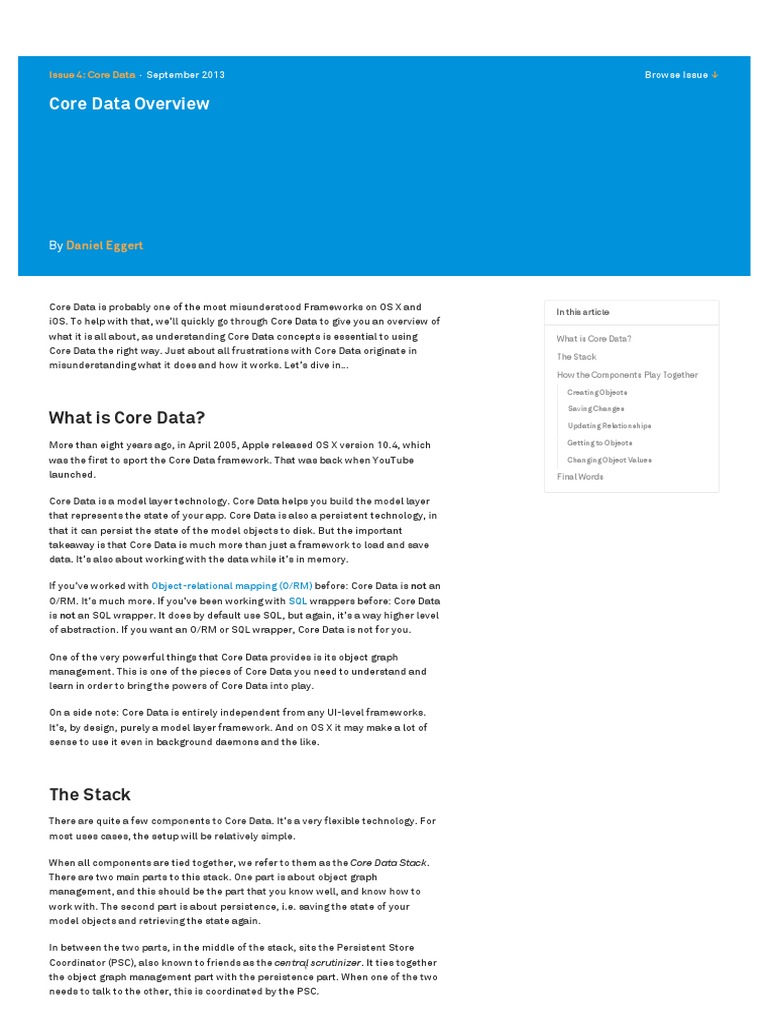 Core Data is probably one of the most misunderstood Frameworks on OS X and In this article