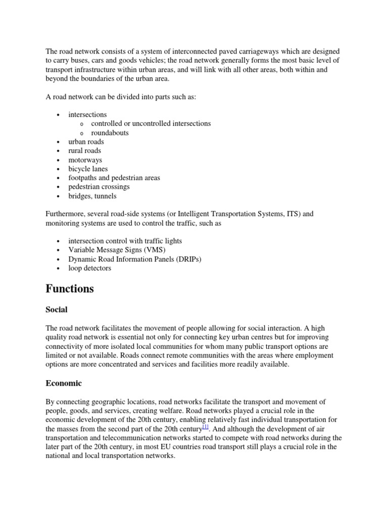 The function of a road network is to facilitate movement from one area to another. As such, it