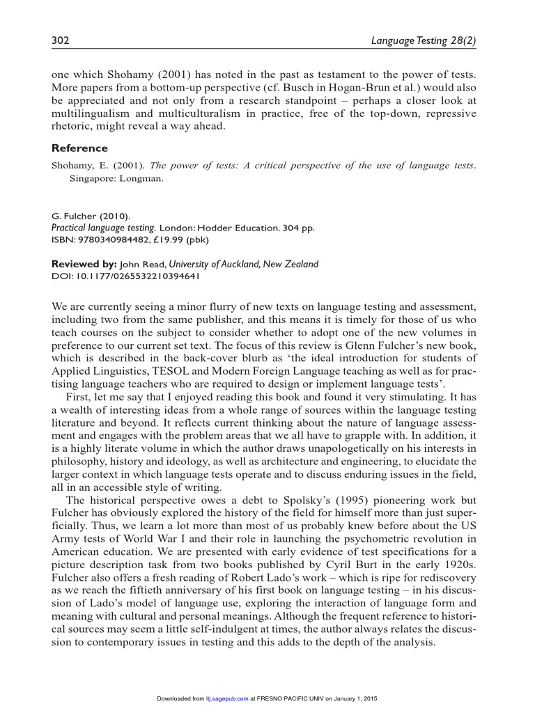 preference to our current set text. The focus of this review is Glenn Fulchers new book,
