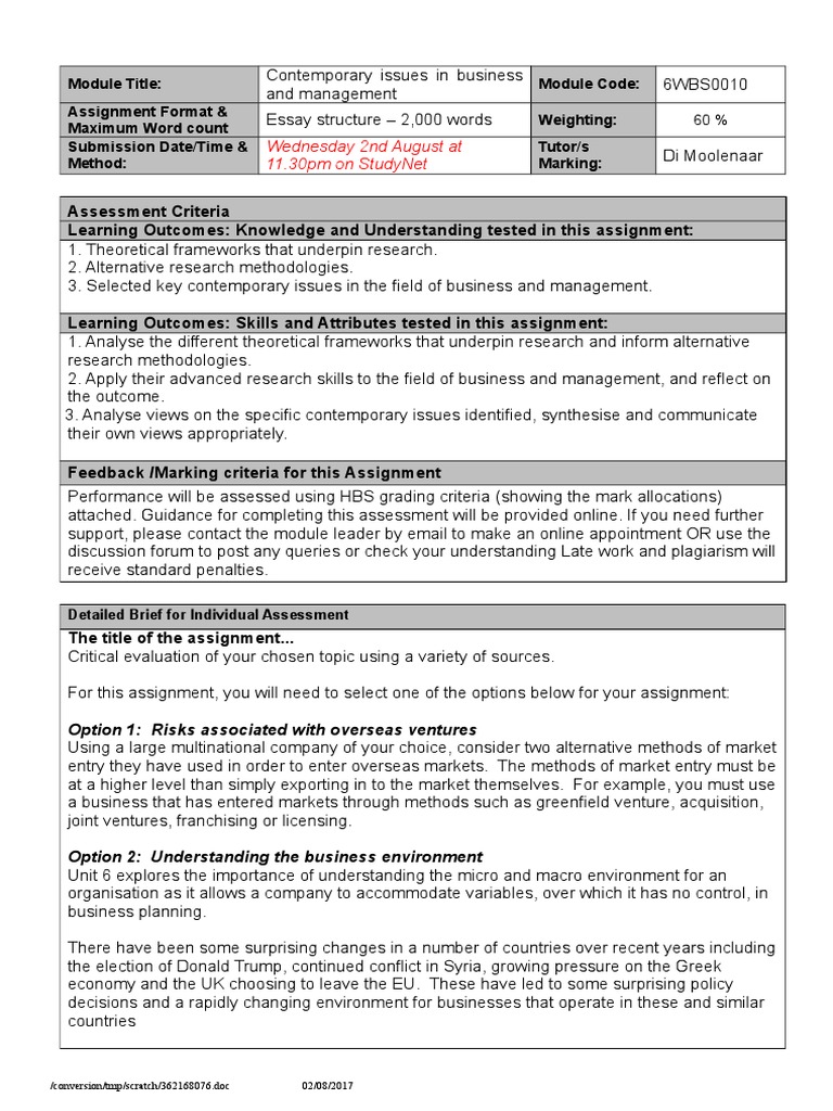 originality of your work. Instructions will be provided on Studynet Module site in the Assignment