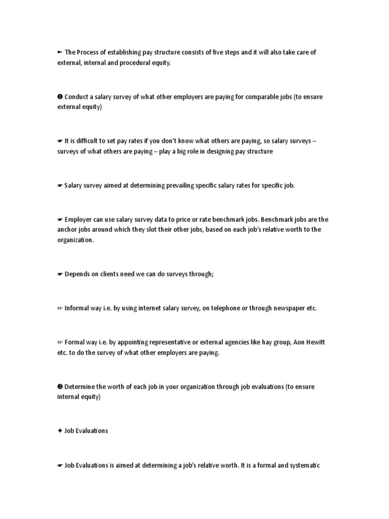 The Process of establishing pay structure consists of five steps and it will also take care of