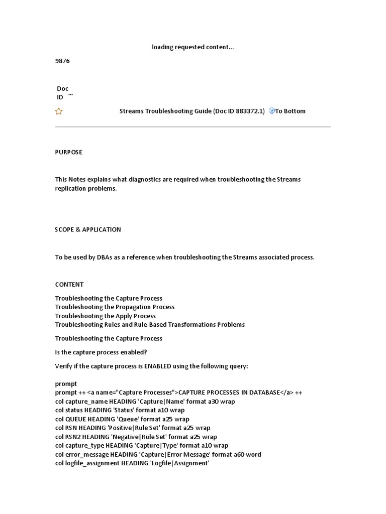 Streams Troubleshooting Guide (Doc ID 883372.1) To Bottom