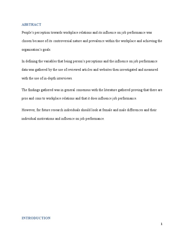 variables that will be measured are peoples perceptions and its influence on job performance.