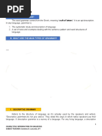 - types of grammar: descriptive grammar, prescriptive grammar, theoretical grammar, (formal