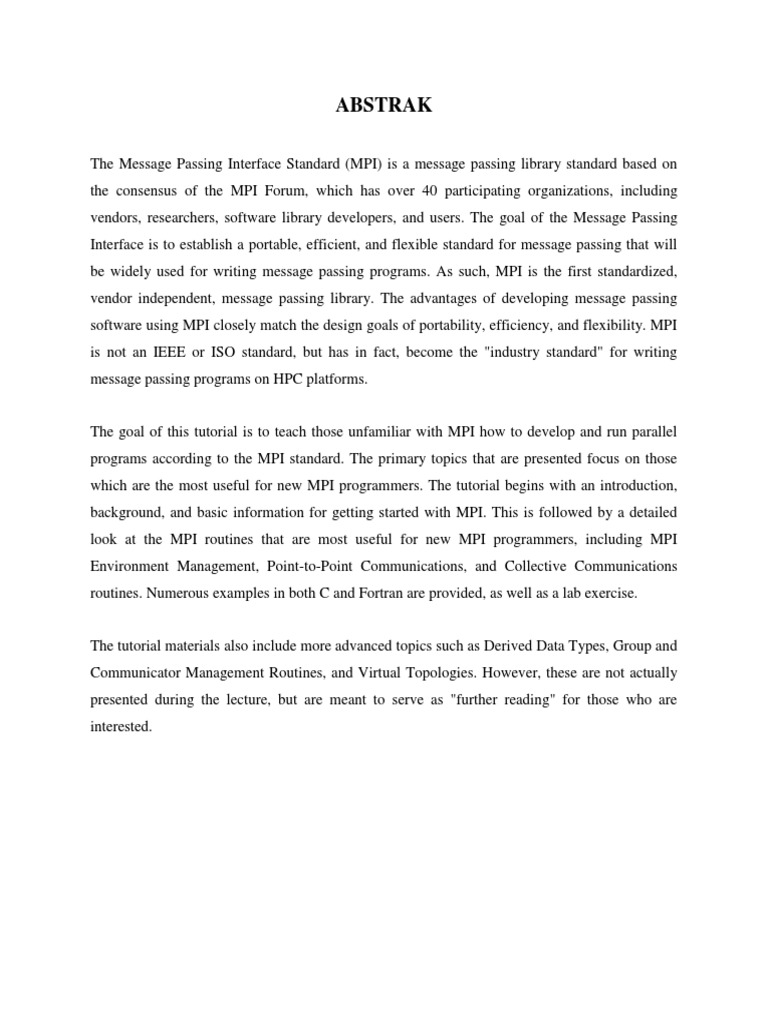 Simply stated, the goal of the Message Passing Interface is to provide a widely