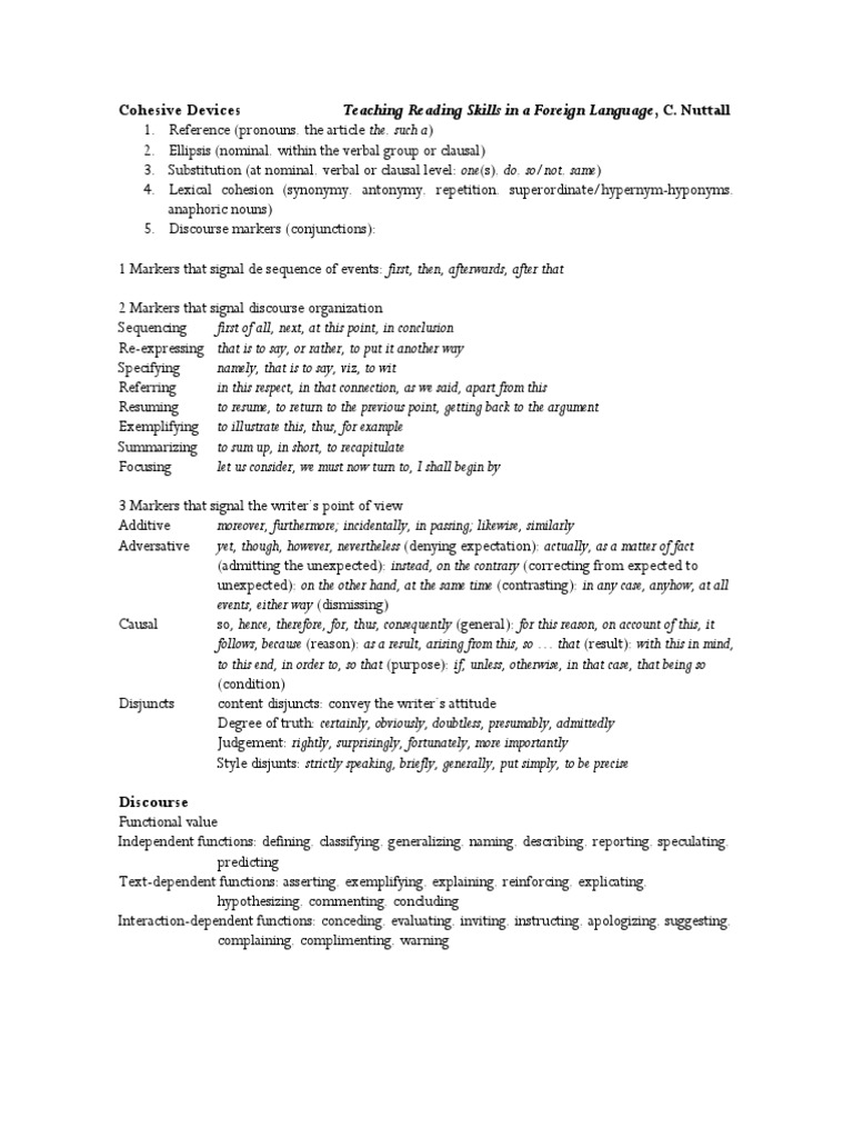 Cohesive Devices Teaching Reading Skills in a Foreign Language, C.