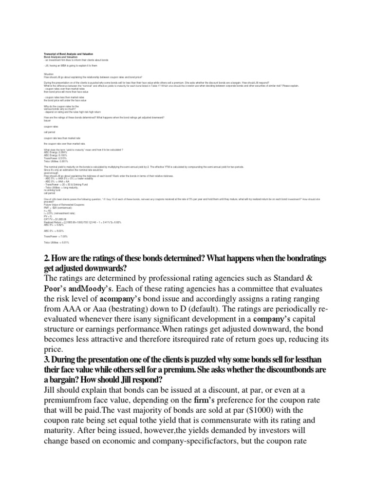 3. During the presentation one of the clients is puzzled why some bonds sell for lessthan