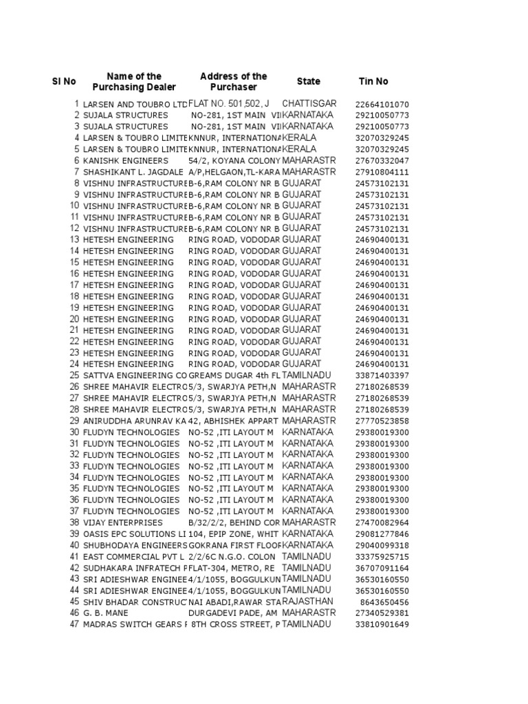 77 LARSEN TOUBRO LTD CUTTACK DIST. NARSI ORISSA 21031104812