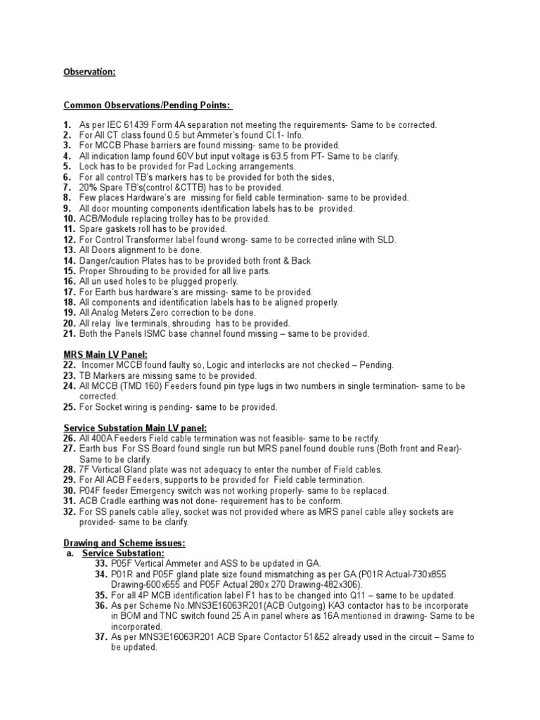 1. As per IEC 61439 Form 4A separation not meeting the requirements- Same to be corrected.