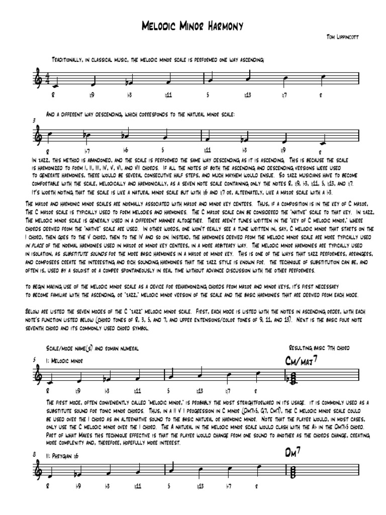 to begin making use of the melodic minor scale as a device for reharmonizing chords from major and minor keys, it's first necessary