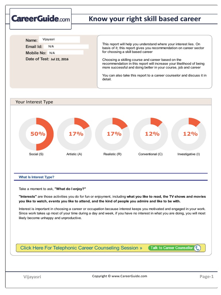 Date of Test: Jul 22, 2016 Choosing a skilling course and career based on the