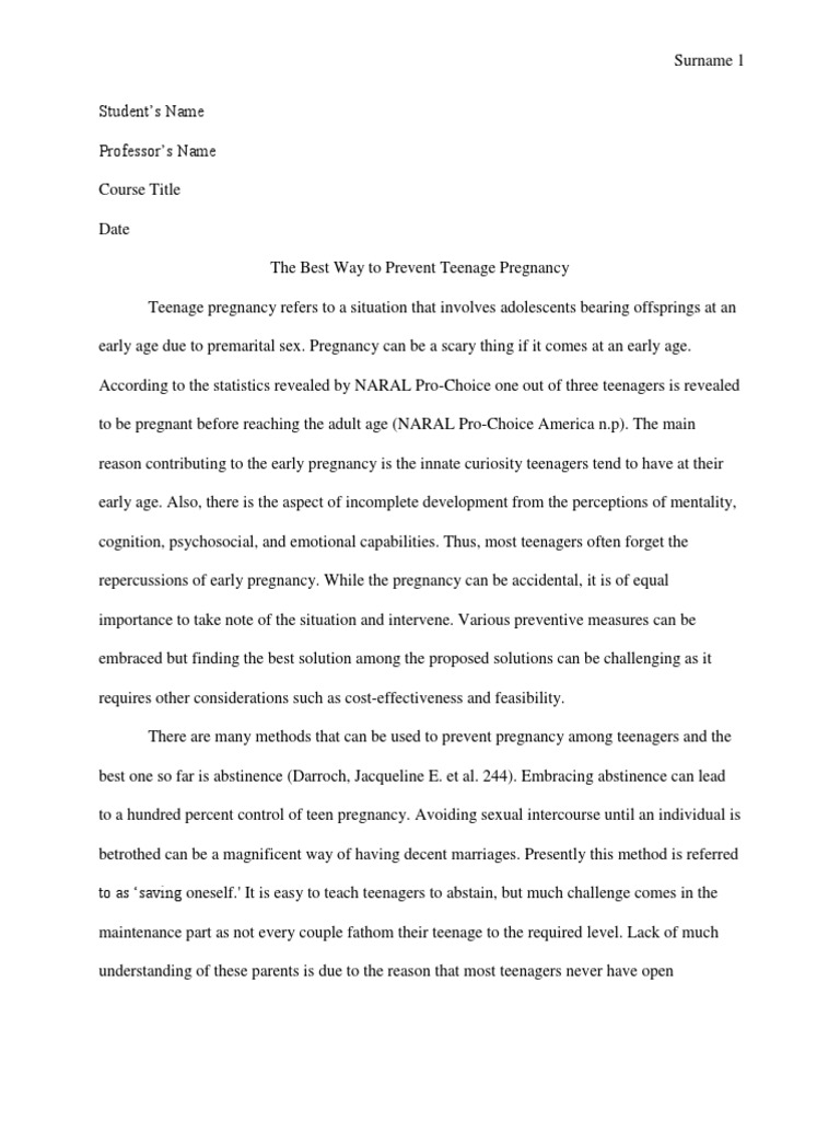 pregnancies. Therefore, it is crucial to teach abstinence as a way of preventing pregnancy rather