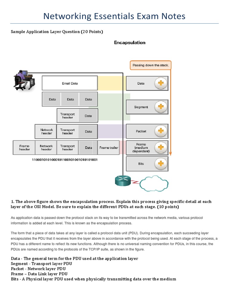 layer of the OSI Model. Be sure to explain the different PDUs at each stage. (10 points)
