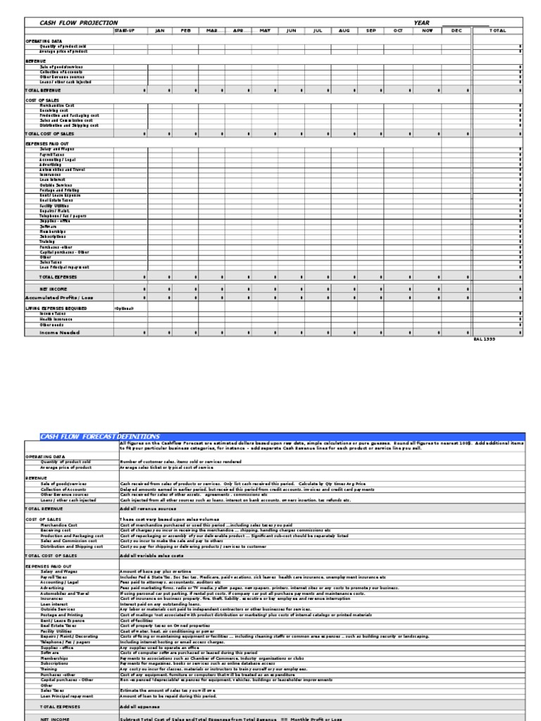 All figures on the Cashflow Forecast are estimated dollars based upon raw data, simple calculations or pure guesses. Round all figures to nearest 100$. Add additional items