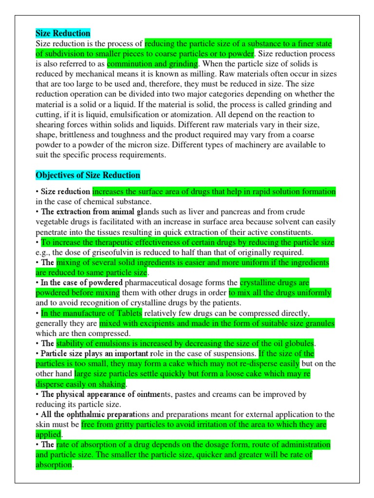 Size reduction is the process of reducing the particle size of a substance to a finer state