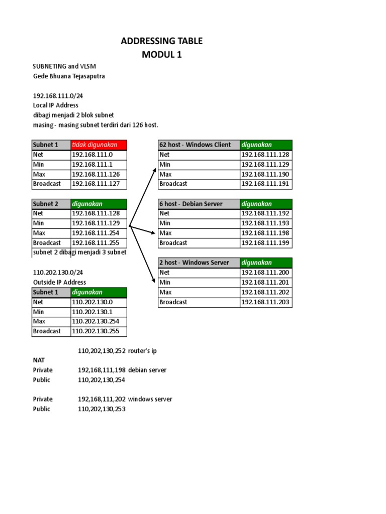 Subnet 1 tidak digunakan 62 host - Windows Client digunakan