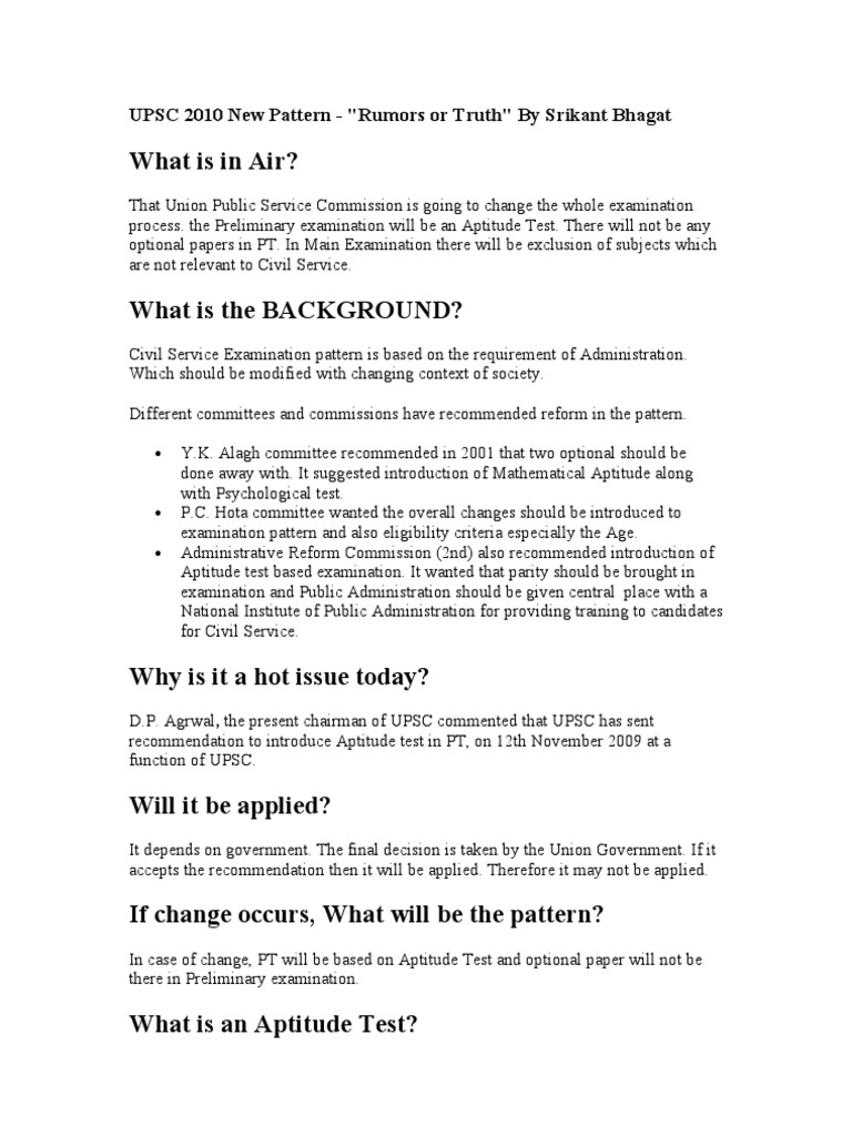 UPSC 2010 New Pattern - "Rumors or Truth" By Srikant Bhagat