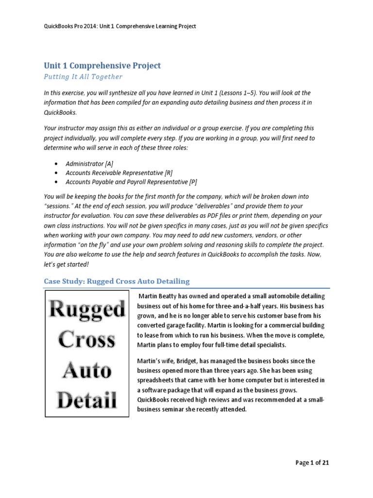 QuickBooks Pro 2014: Unit 1 Comprehensive Learning Project