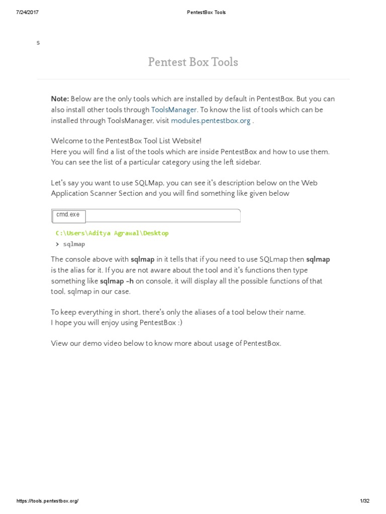 Note: Below are the only tools which are installed by default in PentestBox. But you can