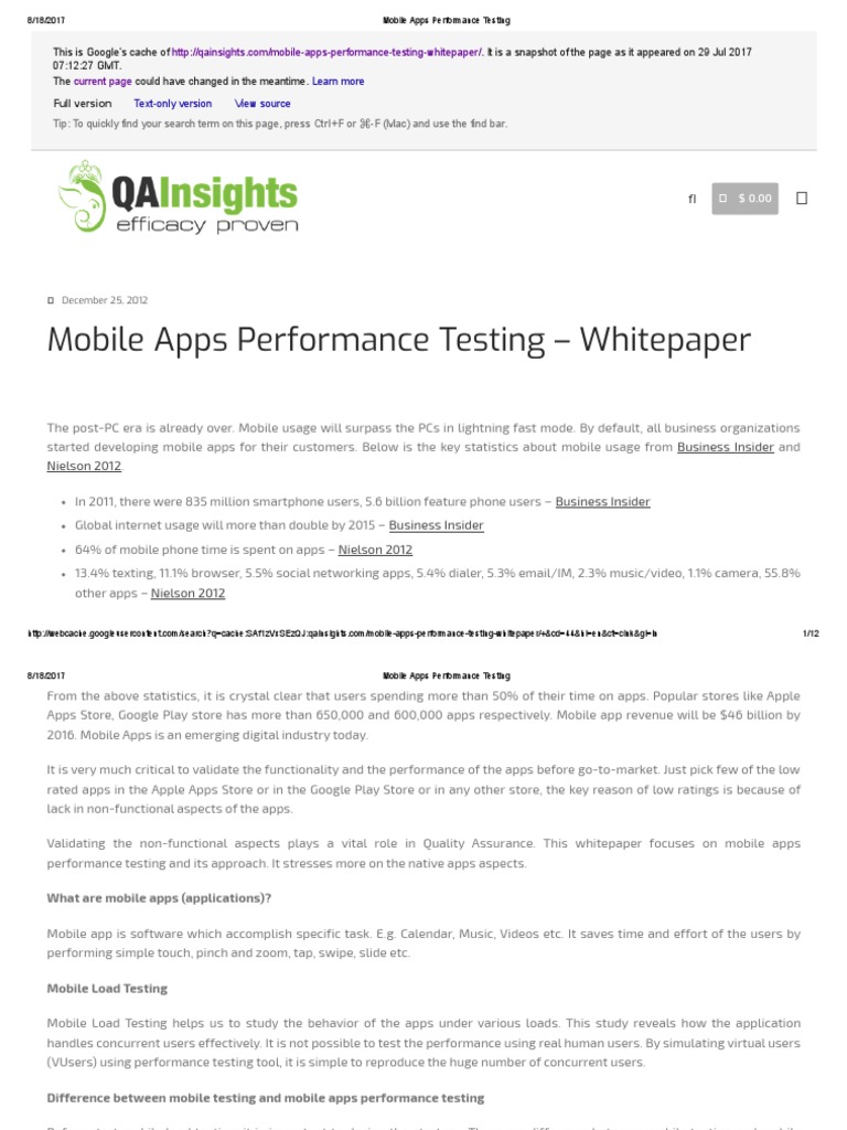 http://webcache.googleusercontent.com/search?q=cache:SAf1zVxSEzQJ:qainsights.com/mobile-apps-performance-testing-whitepaper/+&cd=44&hl=en&ct=clnk&gl=in 1/12