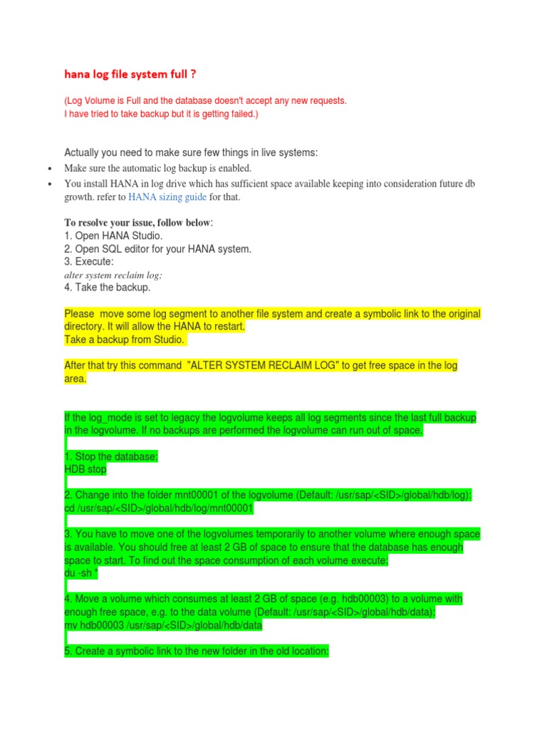hana log file system full ?