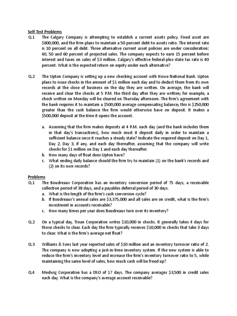 Q.1 The Calgary Company is attempting to establish a current assets policy. Fixed asset are