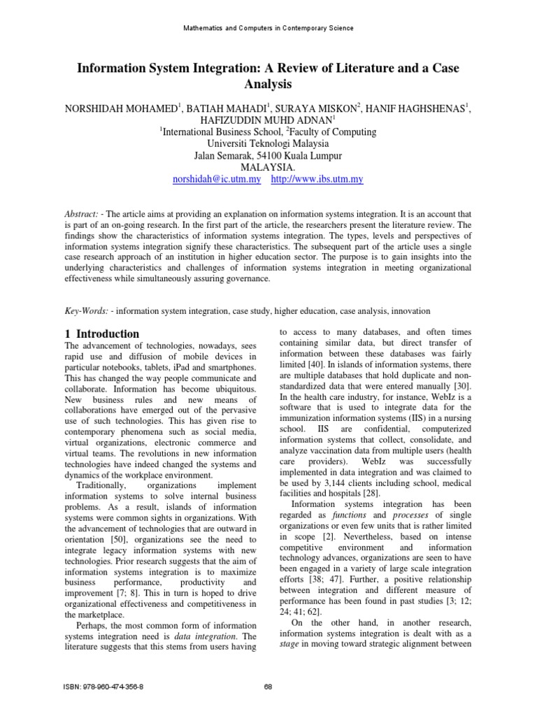 information systems integration signify these characteristics. The subsequent part of the article uses a single