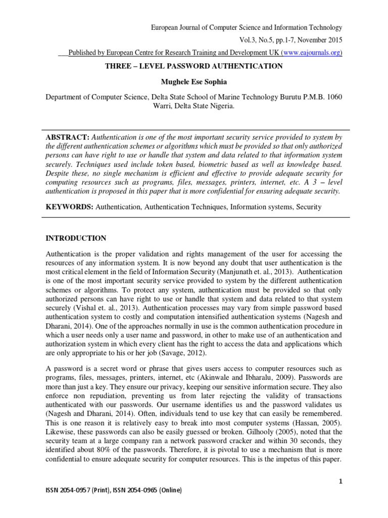 The paper proposes 3-level authentication which is a combination of many other authentication