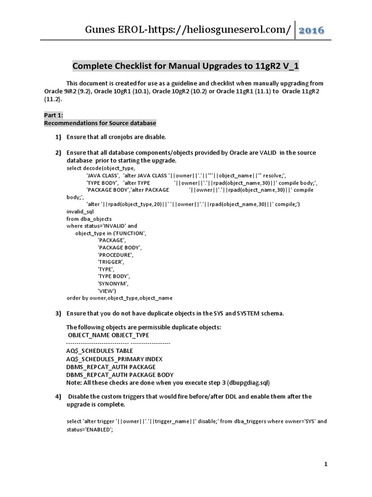 Complete Checklist For Manual Upgrades To 11gR2 V - 1