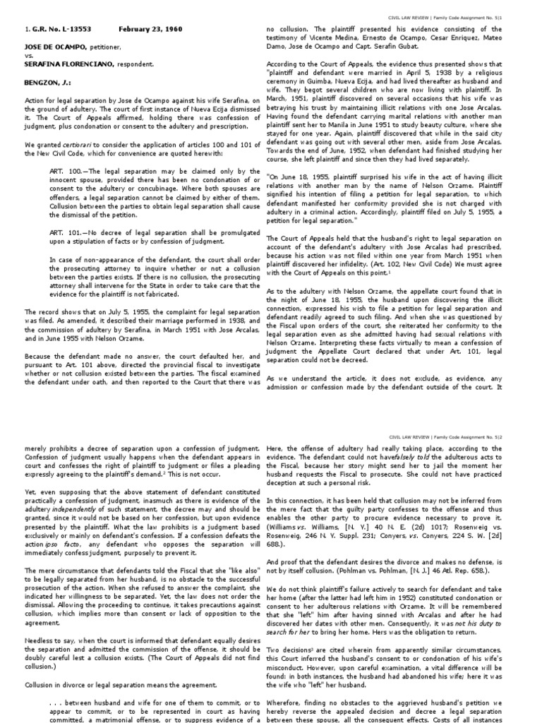1. G.R. No. L-13553 February 23, 1960 no collusion. The plaintiff presented his evidence consisting of the