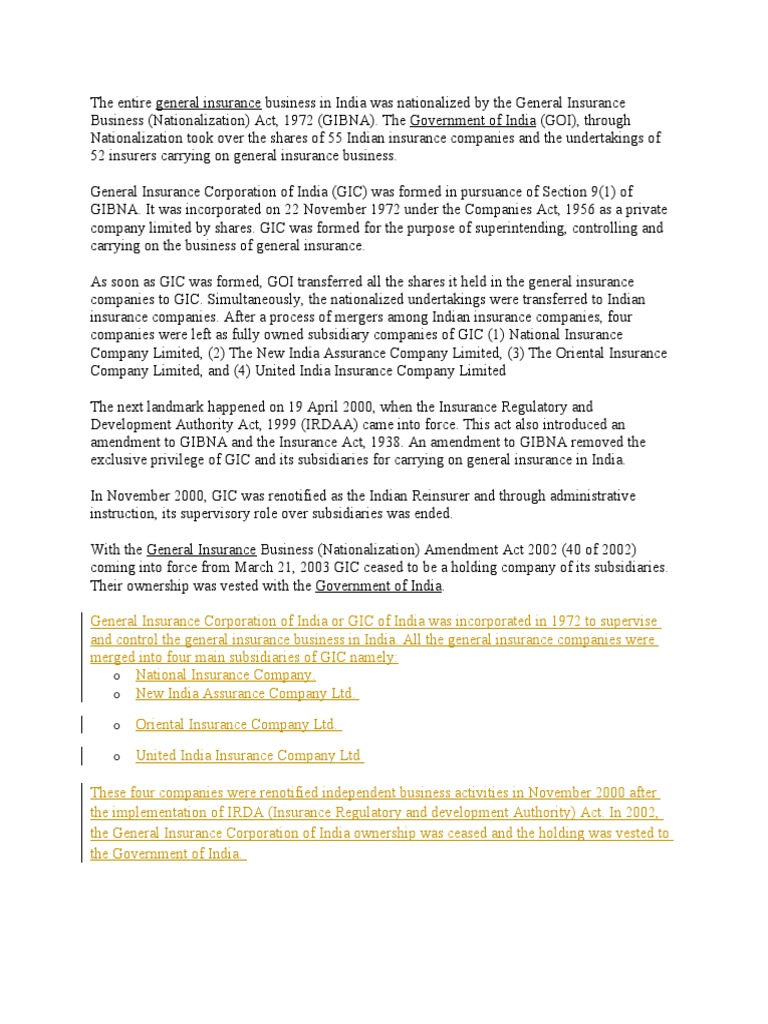 amendment to GIBNA and the Insurance Act, 1938. An amendment to GIBNA removed the