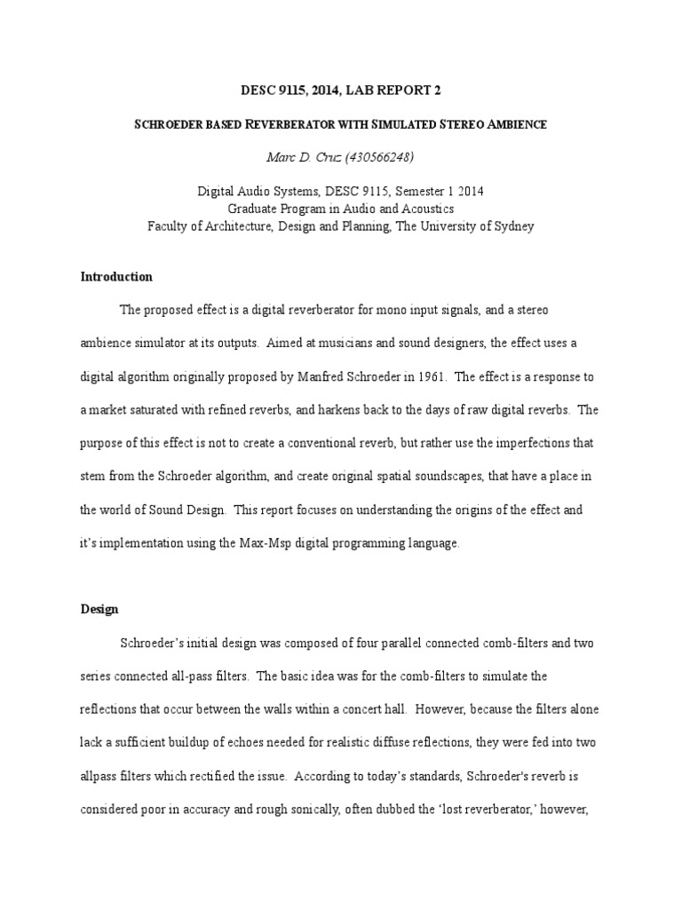 digital algorithm originally proposed by Manfred Schroeder in 1961. The effect is a response to