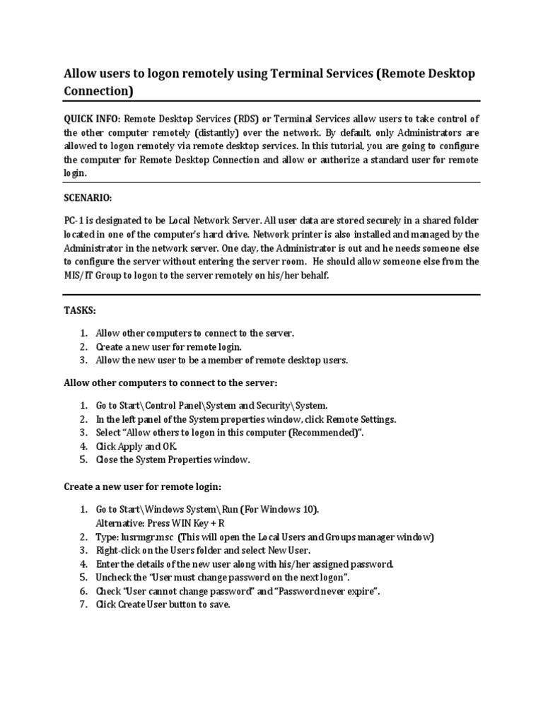 allowed to logon remotely via remote desktop services. In this tutorial, you are going to configure