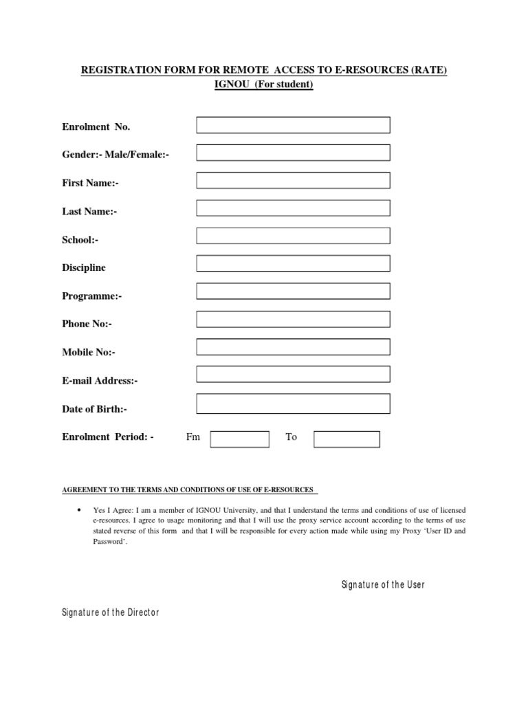 REGISTRATION FORM FOR REMOTE ACCESS TO E-RESOURCES (RATE)