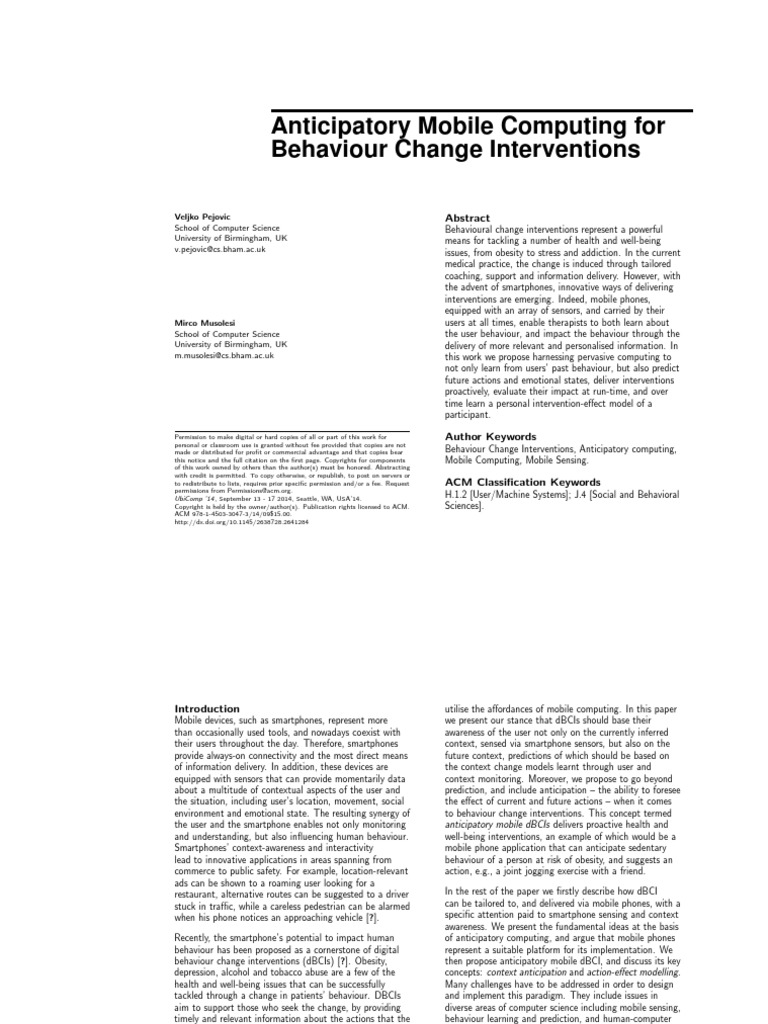made or distributed for profit or commercial advantage and that copies bear Behaviour Change Interventions, Anticipatory computing,
