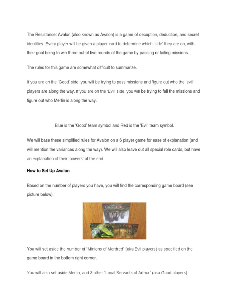 We will base these simplified rules for Avalon on a 6 player game for ease of explanation (and