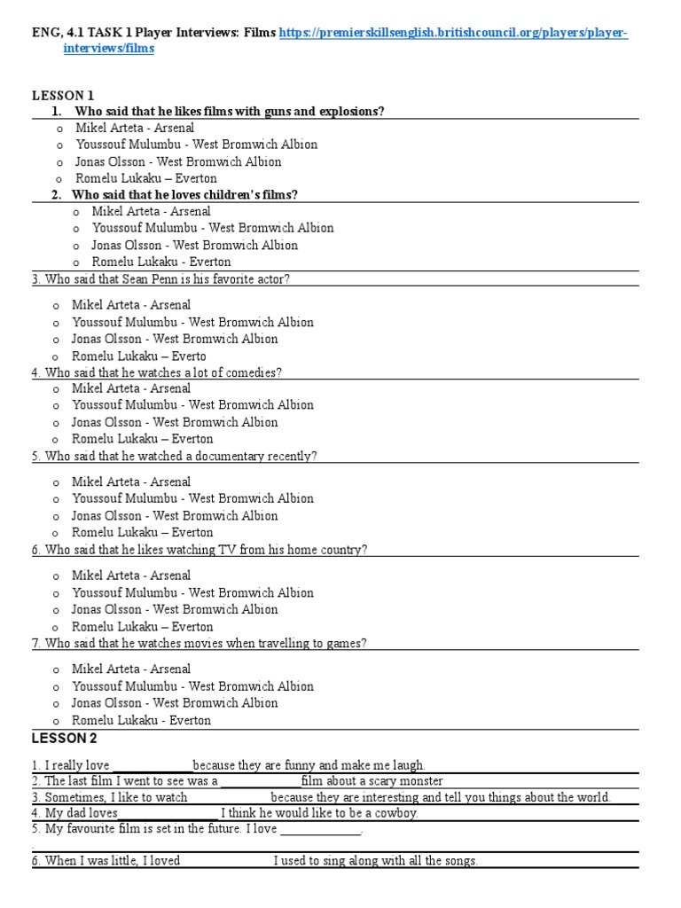 ENG, 4.1 TASK 1 Player Interviews: Films https://premierskillsenglish.britishcouncil.