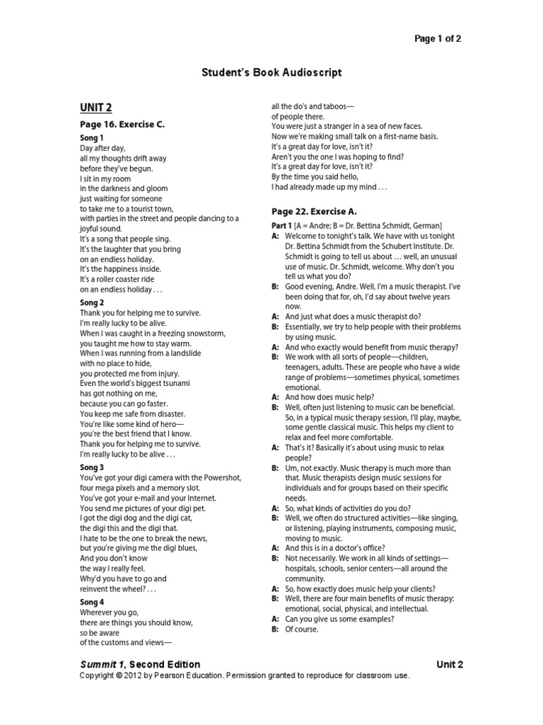 Page 16. Exercise C. You were just a stranger in a sea of new faces.