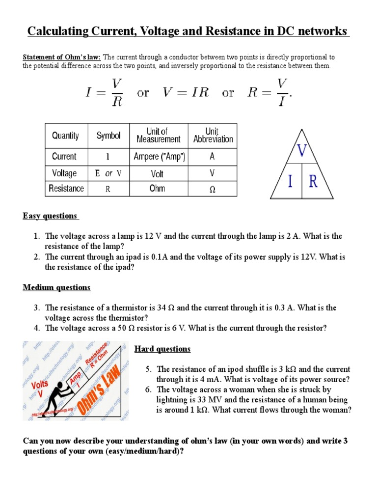 Can you now describe your understanding of ohms law (in your own words) and write 3
