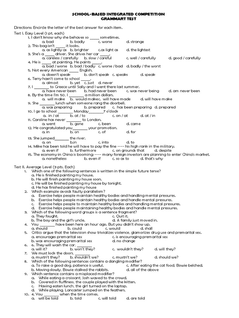 a. bad / worse b. bad / badly c. worse / bad d. badly / the worst
