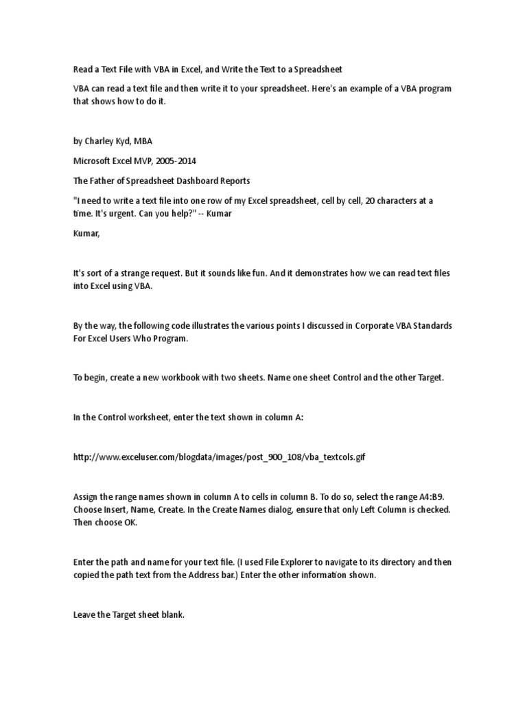 Read a Text File with VBA in Excel, and Write the Text to a Spreadsheet