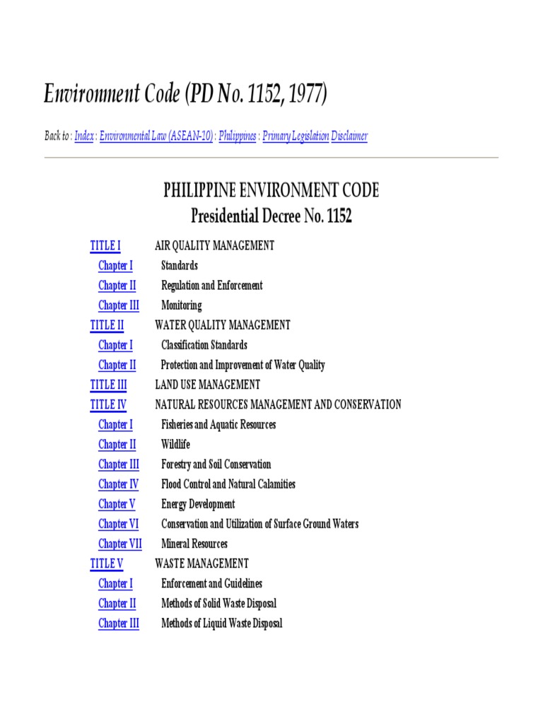 Back to : Index : Environmental Law (ASEAN-10) : Philippines : Primary Legislation Disclaimer