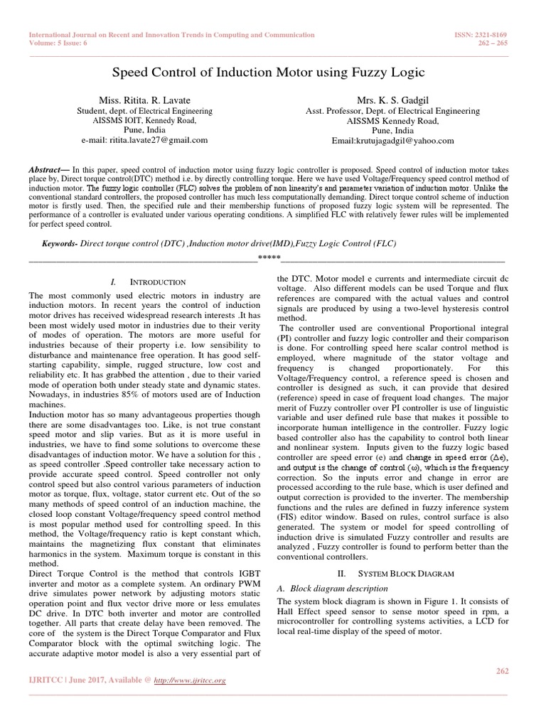 induction motor using fuzzy logic, PI, PID contoller by teena patil and
