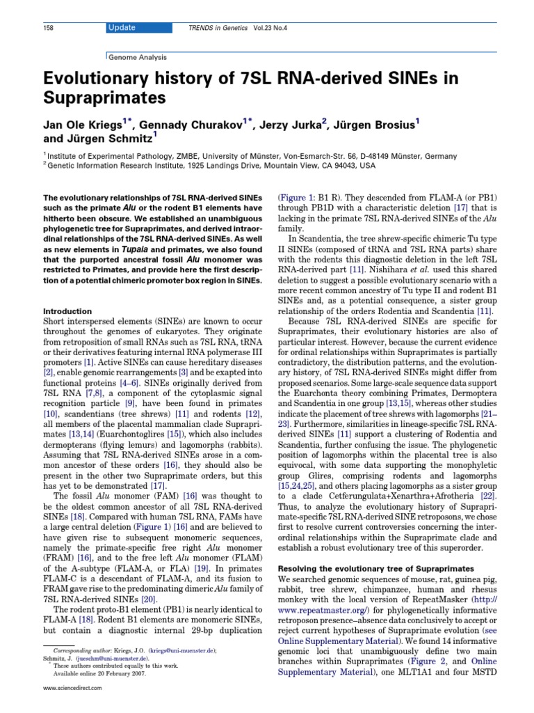 Jan Ole Kriegs1*, Gennady Churakov1*, Jerzy Jurka2, Jurgen Brosius1
