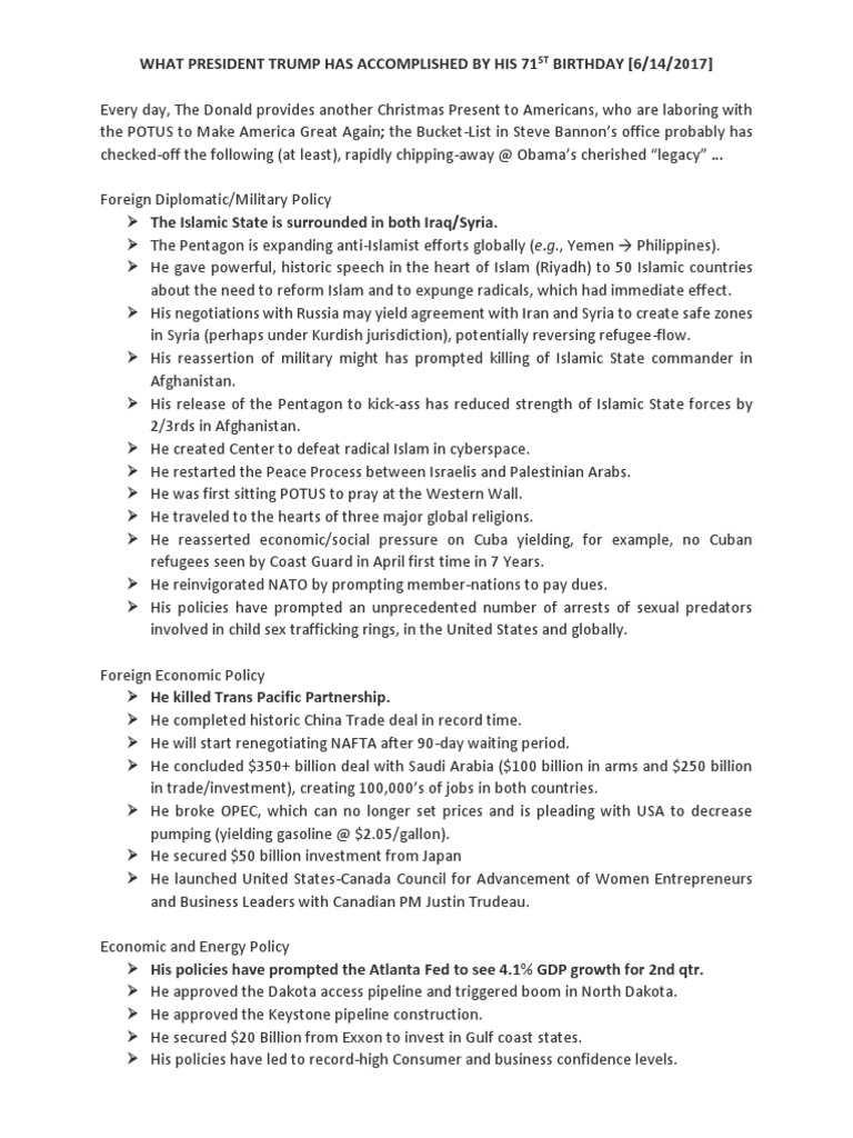 WHAT PRESIDENT TRUMP HAS ACCOMPLISHED BY HIS 71ST BIRTHDAY [6/14/2017]