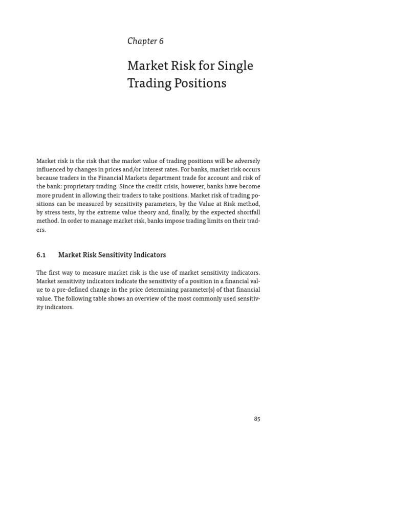 sitions can be measured by sensitivity parameters, by the Value at Risk method,