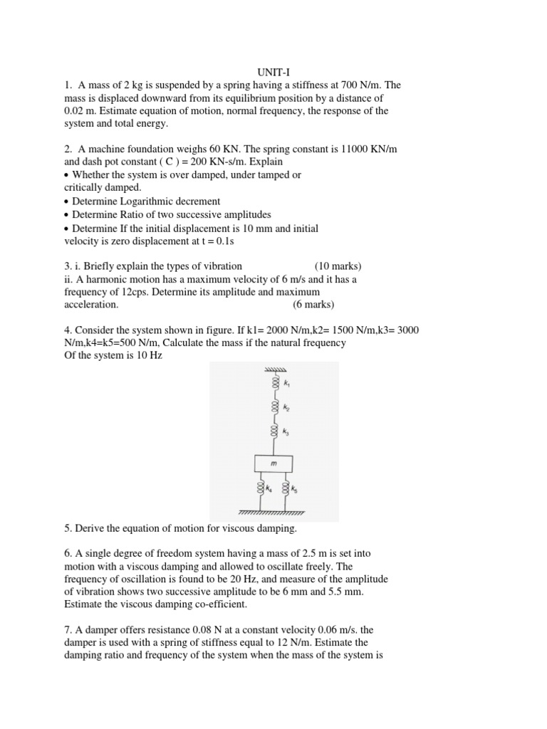 1. A mass of 2 kg is suspended by a spring having a stiffness at 700 N/m. The